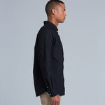Long sleeve button up shirt, button-down collar, chest pocket, clear buttons, adjustable cuffs